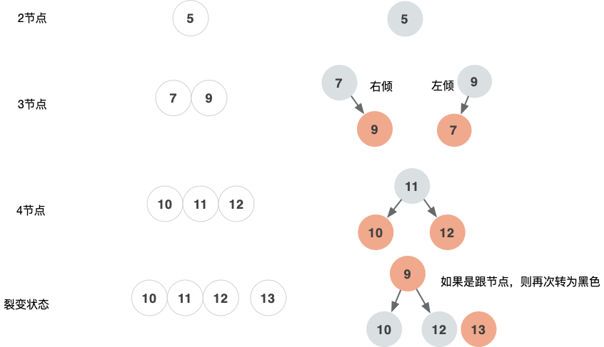 裂变状态 9先从黑节点(从4节点)变成红节点,10、12先从红节点变成黑节点。