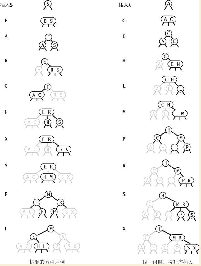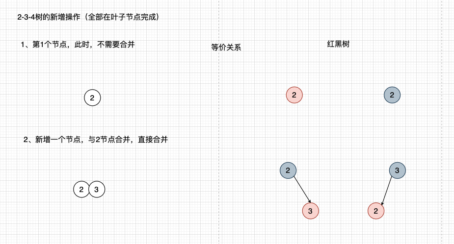 和标准的二叉查找树由上向下生长不同,2-3树的生长是由下向上的。