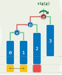 | template <typename T> BinNodePosi<T> BST<T>::rotateAt ( BinNodePosi<T> v ) { if ( !v ) { printf ( "\a\nFail to rotate a null node\n" ); exit ( -1 ); } BinNodePosi<T> p = v->parent; BinNodePosi<T> g = p->parent; if ( IsLChild ( *p ) ) if ( IsLChild ( *v ) ) { p->parent = g->parent; return connect34 ( v, p, g, v->lc, v->rc, p->rc, g->rc ); } else { v->parent = g->parent; return connect34 ( p, v, g, p->lc, v->lc, v->rc, g->rc ); } else if ( IsRChild ( *v ) ) { p->parent = g->parent; return connect34 ( g, p, v, g->lc, p->lc, v->lc, v->rc ); } else { v->parent = g->parent; return connect34 ( g, v, p, g->lc, v->lc, v->rc, p->rc ); } }