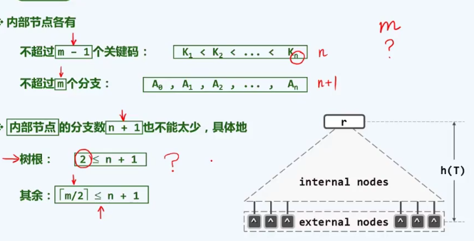m=5时,每个节点的分支数不超过5,一般节点分支树不少于是3, (3,5)