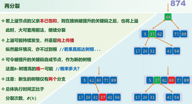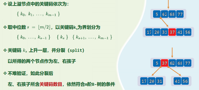 因为新节点的插入,导致所属节点的分支数超过B树阶次m的情况称作overflow