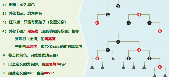 红黑树是一种结点带有颜色属性的二叉查找树,但它在二叉查找树之外,还有以下5大性质: